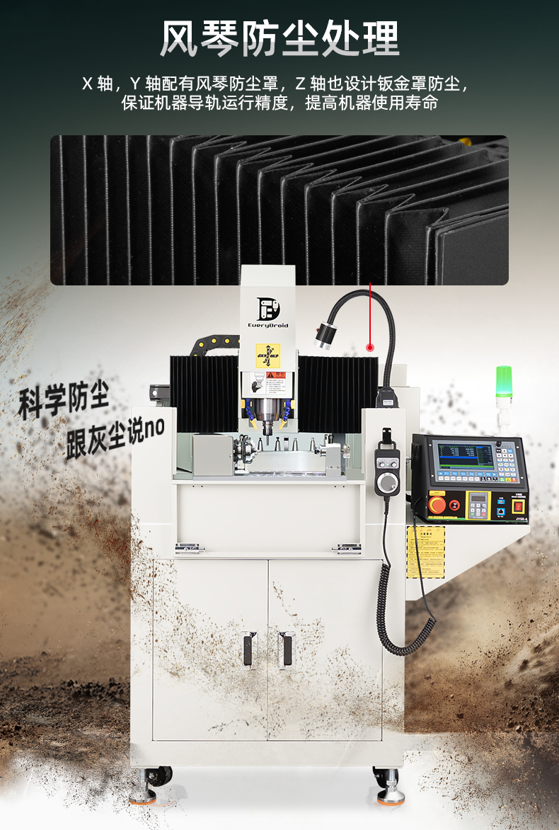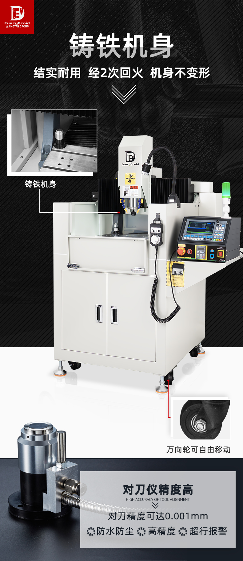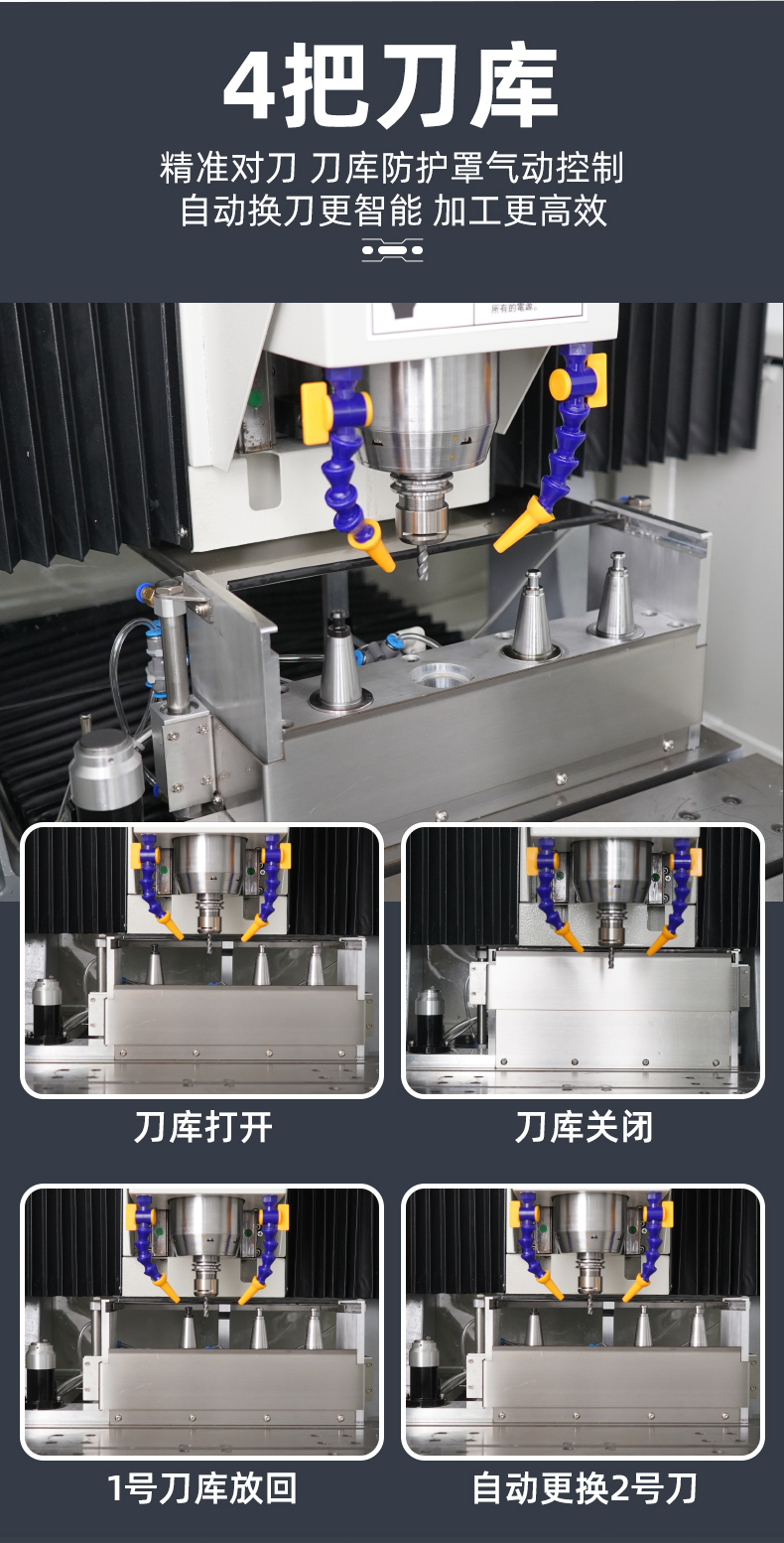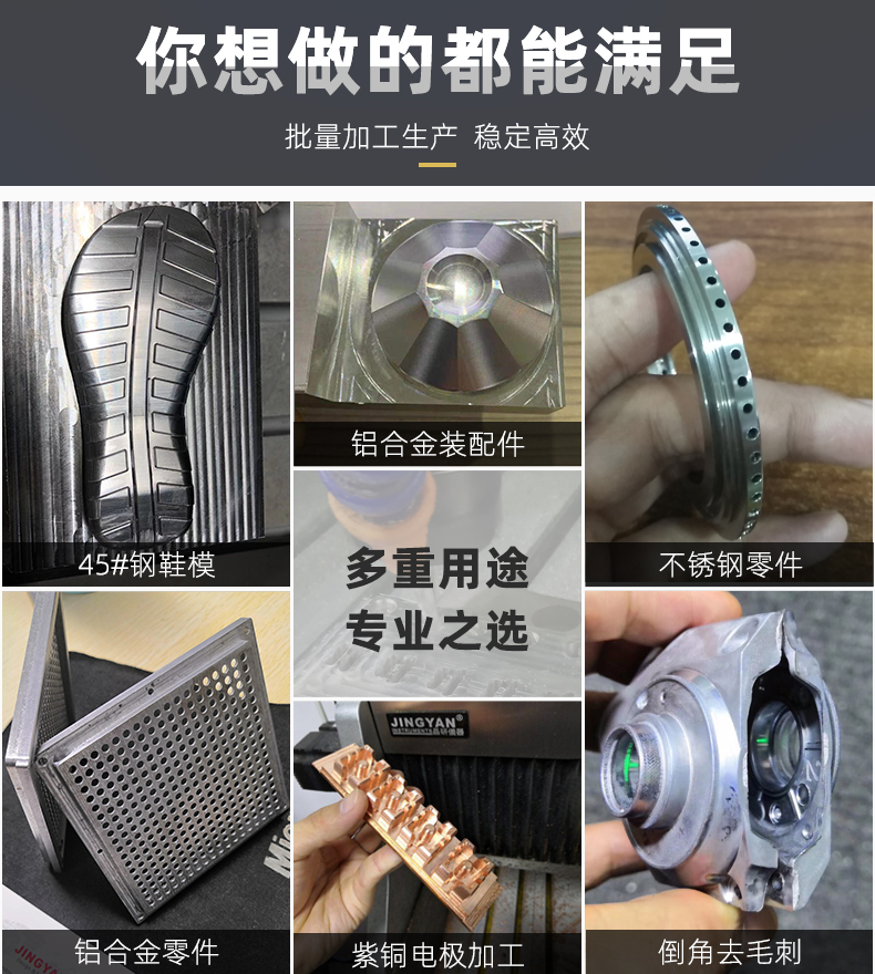 晶研V系列自動換刀鑄鐵精雕機是一款高效、穩(wěn)定、多功能的設(shè)備,具備專業(yè)過濾系統(tǒng)、自動換刀、4把刀庫和高轉(zhuǎn)速主軸等特點。它適用于多種材料加工,滿足不同行業(yè)需求,如45#鋼鞋模、模具制造、金屬和鋁合金零件加工、紫銅電極加工等精密任務(wù)。新升級的JC3040-JYSE4型號強調(diào)高精度和穩(wěn)定性,提供多重配置和立體加工的高效性能,設(shè)備配備閉環(huán)電機、風琴防塵處理和高防水性模具主軸,確保長時間穩(wěn)定運行。JYSE4控制系統(tǒng)支持斷電續(xù)雕和跳行加工,進一步提升加工效率。