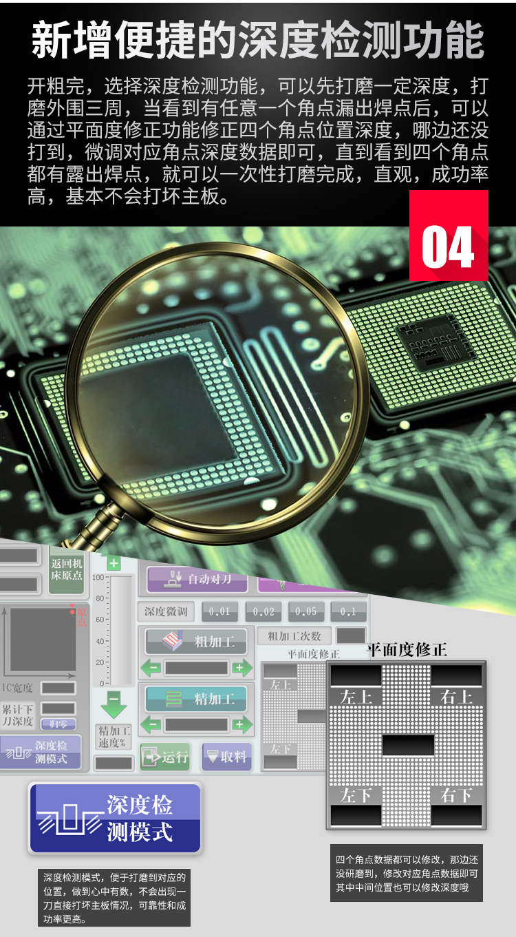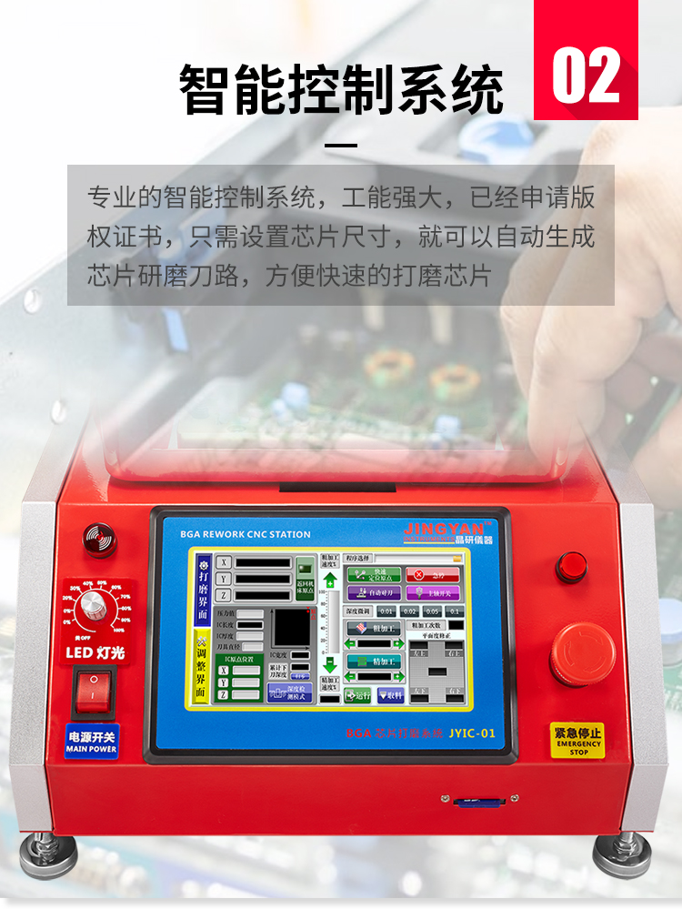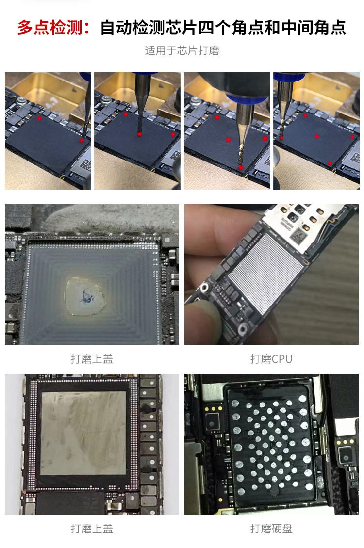 晶研智能BGA芯片拆除機(jī)是由東莞市晶研儀器科技有限公司獨(dú)立研發(fā)的全自動(dòng)BGA芯片維修平臺(tái),配合相應(yīng)高精度定制模具可對(duì)各種類型的IC芯片進(jìn)行拆除或者打磨,效果優(yōu)秀。晶研智能BGA芯片拆除機(jī)采用進(jìn)口耗材,整機(jī)的裝配都經(jīng)過(guò)嚴(yán)格的把關(guān)。拆除機(jī)以其獨(dú)有的平面度檢測(cè)功能使得打磨變形的BGA主板更加精確簡(jiǎn)單。
