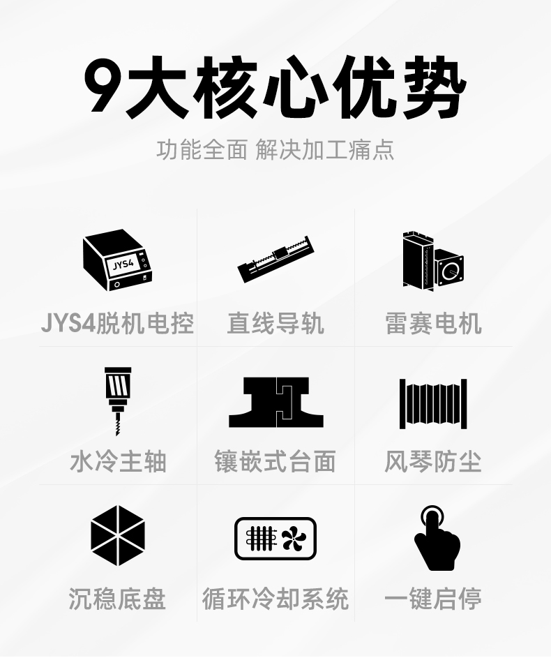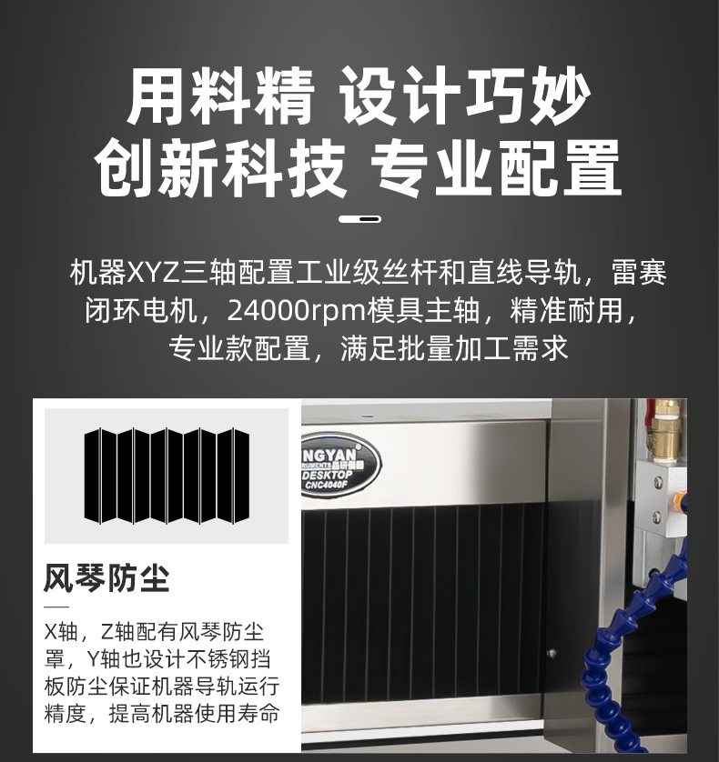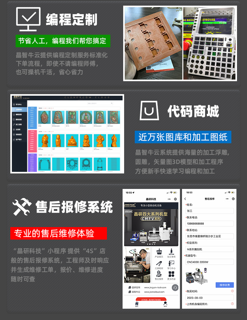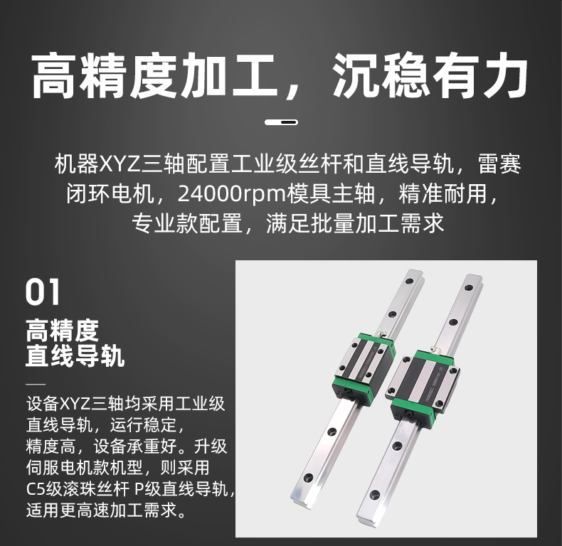 晶研方軌精雕機(jī)是一款高精度、高穩(wěn)定性的數(shù)控雕刻設(shè)備,適用于多種材料和加工需求。它配備了工業(yè)級絲桿、直線導(dǎo)軌和雷賽閉環(huán)電機(jī),確保了加工的精度和耐用性。此外,它還具有風(fēng)琴防塵設(shè)計(jì)、手動注油系統(tǒng)、沉穩(wěn)底盤和高柔拖鏈線,提高了機(jī)器的使用壽命和運(yùn)行穩(wěn)定性。該設(shè)備提供多種控制系統(tǒng)選擇,包括JYS4脫機(jī)電控系統(tǒng)、伺服+JYS4專業(yè)版脫機(jī)系統(tǒng)和Mach3控制系統(tǒng),以滿足不同的生產(chǎn)需求。晶研方軌精雕機(jī)的桌面款設(shè)計(jì)使其占地面積小,適合在有限空間內(nèi)使用,是一款適合工廠批量生產(chǎn)和自動化加工的高效設(shè)備。