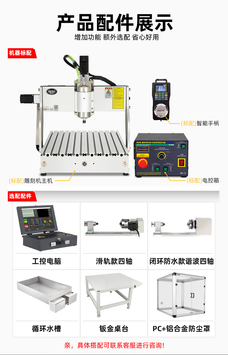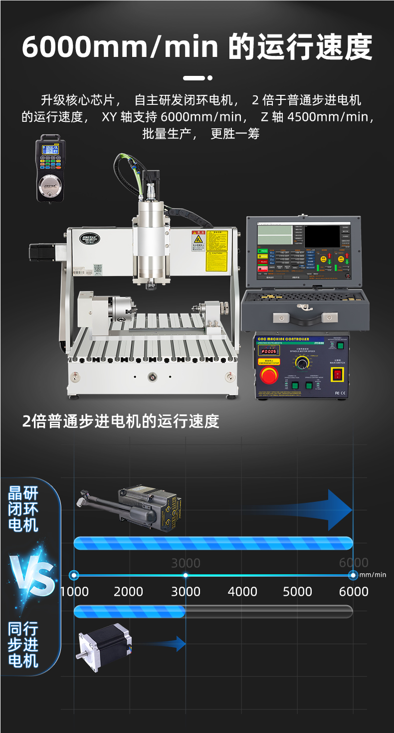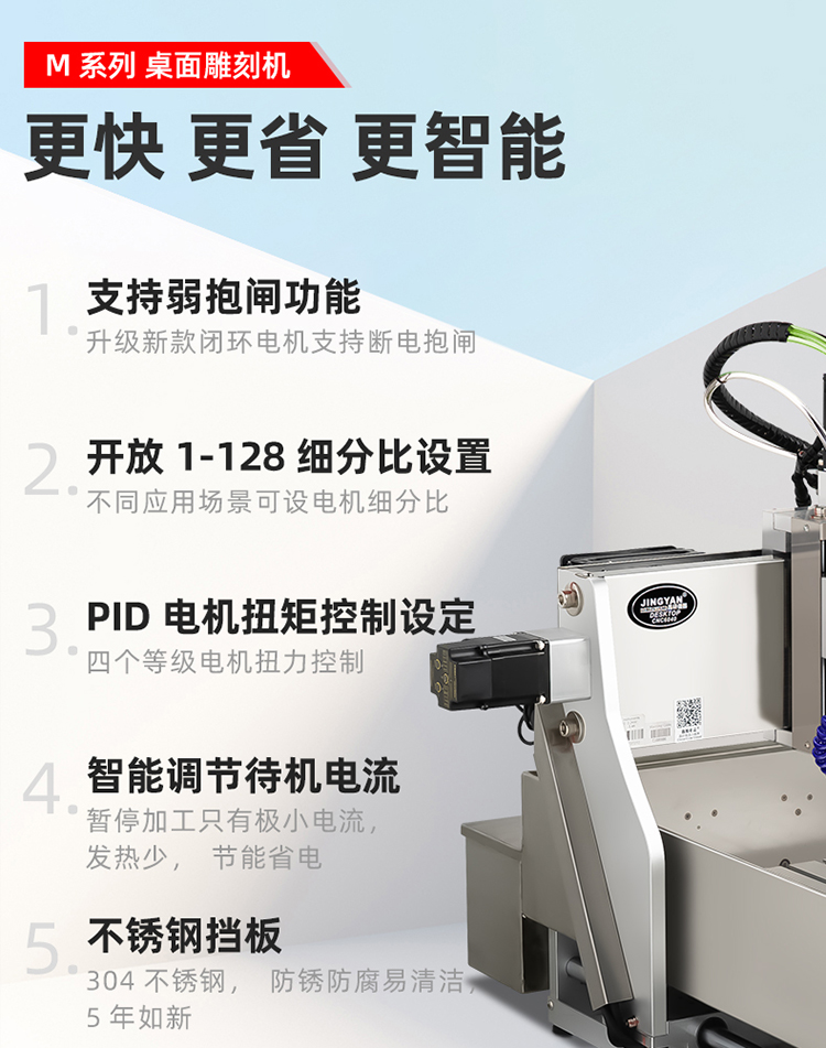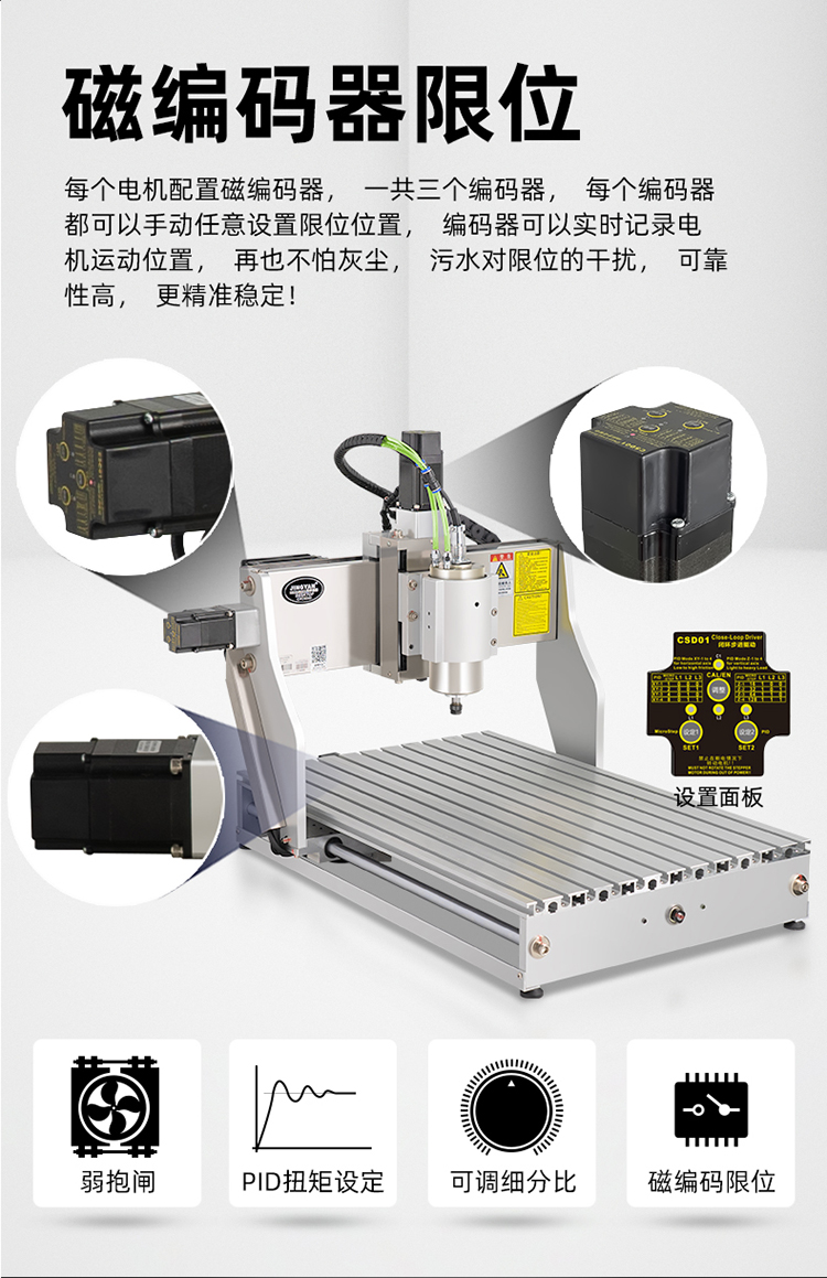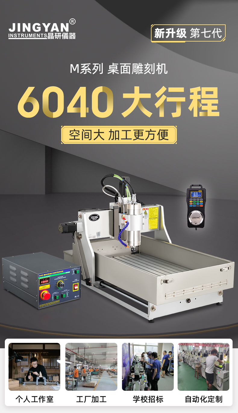 晶研M系列桌面雕刻機(jī)提供多種功率選擇,適應(yīng)不同硬度材料加工需求。其高精度編碼限位系統(tǒng)、高速閉環(huán)電機(jī)和智能驅(qū)動(dòng)卡,確保了加工的精度、速度和節(jié)能效果。此外,晶智牛云系統(tǒng)和手機(jī)小程序?yàn)橛脩籼峁┝吮憬莸慕虒W(xué)和售后服務(wù),使其成為工業(yè)應(yīng)用的理想選擇。