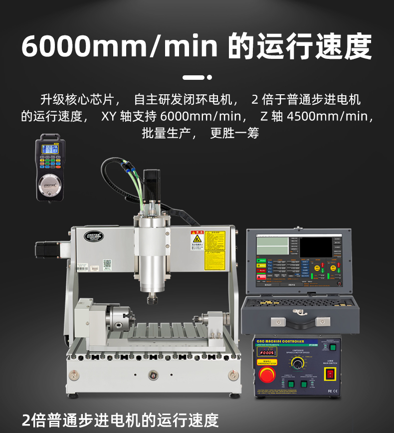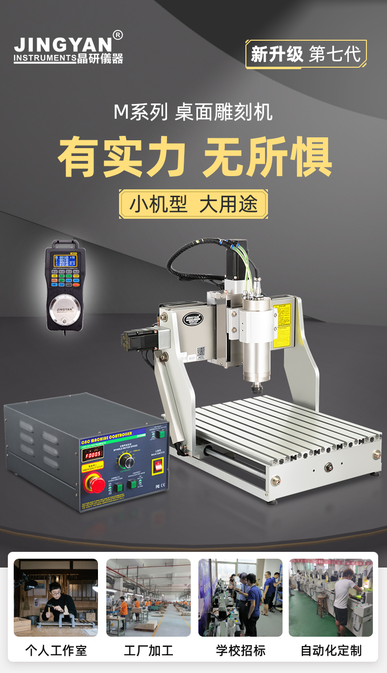 晶研M系列桌面雕刻機(jī)提供多種功率選擇,適應(yīng)不同硬度材料加工需求。其高精度編碼限位系統(tǒng)、高速閉環(huán)電機(jī)和智能驅(qū)動(dòng)卡,確保了加工的精度、速度和節(jié)能效果。此外,晶智牛云系統(tǒng)和手機(jī)小程序?yàn)橛脩籼峁┝吮憬莸慕虒W(xué)和售后服務(wù),使其成為工業(yè)應(yīng)用的理想選擇。