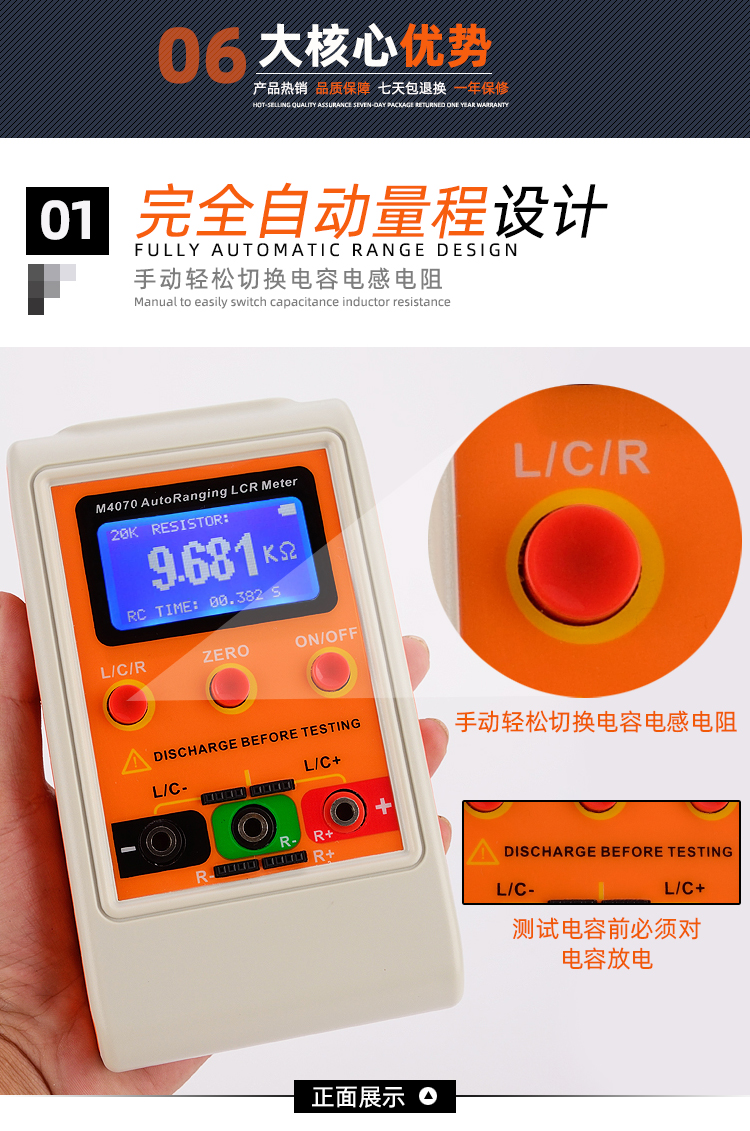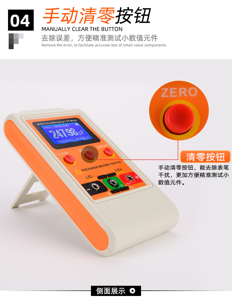自動(dòng)量程LCR,大量程測試,鋰電池充電,數(shù)據(jù)采集,手動(dòng)清零按鈕。