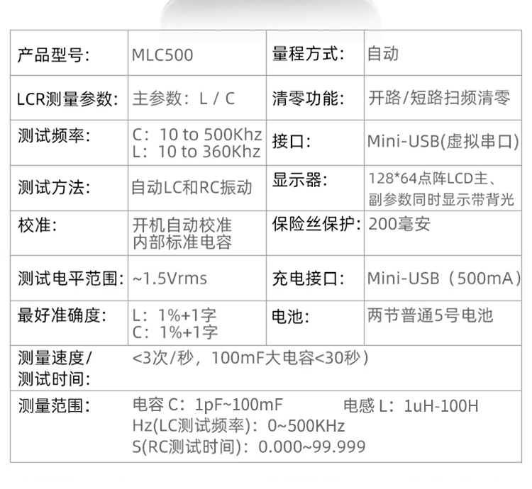 廠家直銷,高精度電容電感表MLC500,高頻測(cè)試,電容500kHz,電感360kHz,性價(jià)比超值,對(duì)于家電維修,DIY愛好設(shè)計(jì),小元件測(cè)試都是非常不錯(cuò)的,測(cè)試速度快,精度靈敏,絕對(duì)是您的不錯(cuò)之選!另配上位機(jī)軟件,連接電腦,便于專業(yè)工程人員對(duì)數(shù)據(jù)研究分析,物超所值啦!您還在等什么?!