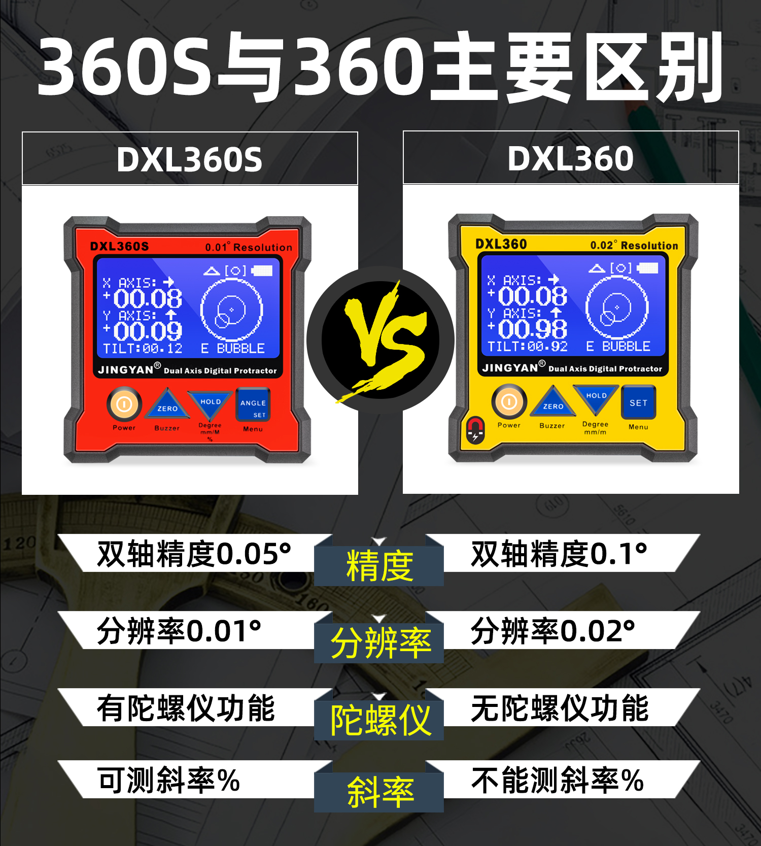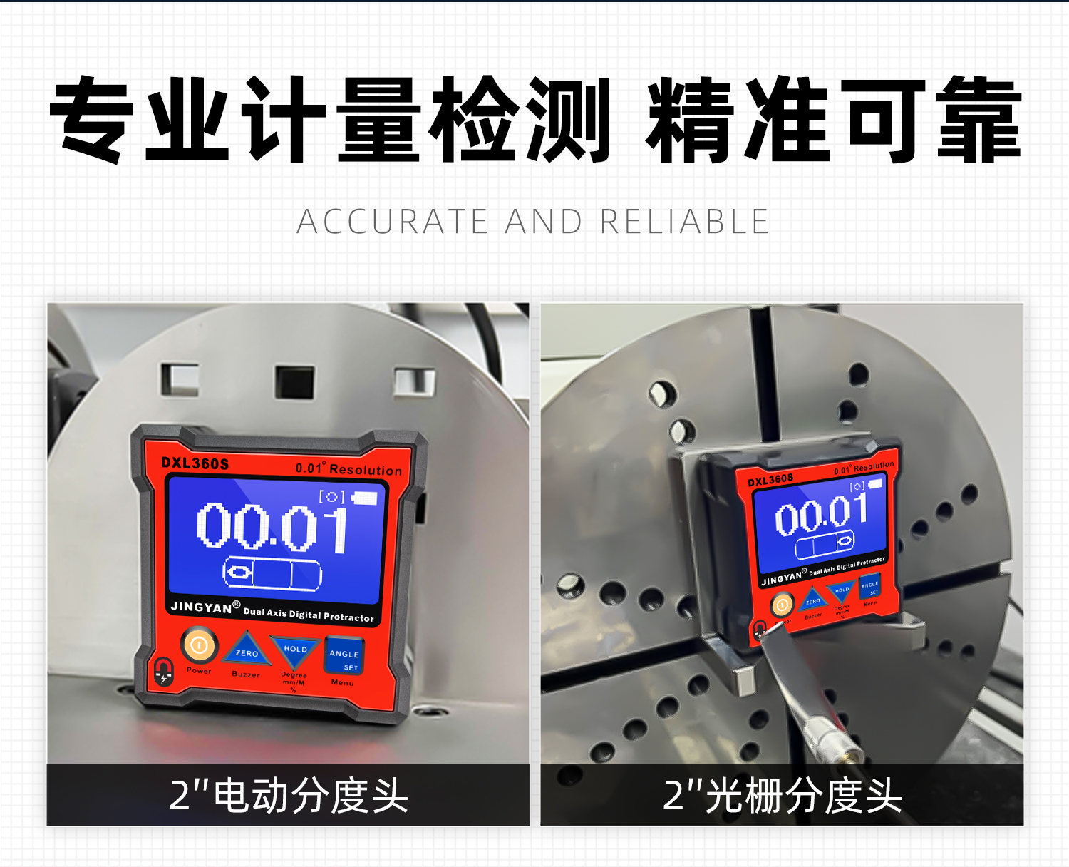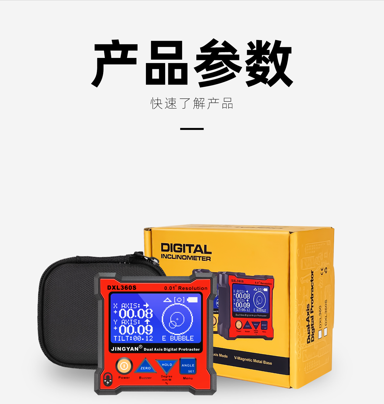 DXL360/S是一款專業(yè)測量水平和空間相對夾角(*DXL360S專有)的高精度數(shù)顯傾角儀/水平儀,它基于微機(jī)電系統(tǒng)(MEMS)的先進(jìn)技術(shù),結(jié)合優(yōu)化的補(bǔ)償模型算法,保證傾角儀測量的穩(wěn)定性和重復(fù)性。DXL360S精度高達(dá)0.05°,分辨率0.01°,可以采用3種測量單位顯示(角度、毫米/米、斜率),特有的空間相對夾角功能(GYRO),可不受環(huán)境限制,測量任意平面之間相對夾角,陀螺儀測量精度±0.5°。DXL360實(shí)現(xiàn)最好精度0.1°,分辨率0.02°,可以采用2種測量單位顯示(角度、毫米/米)。DXL360/S支持單軸4×90°,雙軸±40°測量,底部和背部測量基準(zhǔn)面有強(qiáng)磁性,V型凹槽設(shè)計(jì)便于放置在圓管上進(jìn)行測量。雙重?cái)?shù)據(jù)存儲功能,連接電腦或手機(jī)進(jìn)行數(shù)據(jù)傳輸。DXL360/S廣泛應(yīng)用于機(jī)械制造、汽車維修、醫(yī)療行業(yè)、木材加工、通訊檢測、家居裝潢等用途。DXL360/S以其豐富的功能和實(shí)用性,廣受全球客戶青睞。