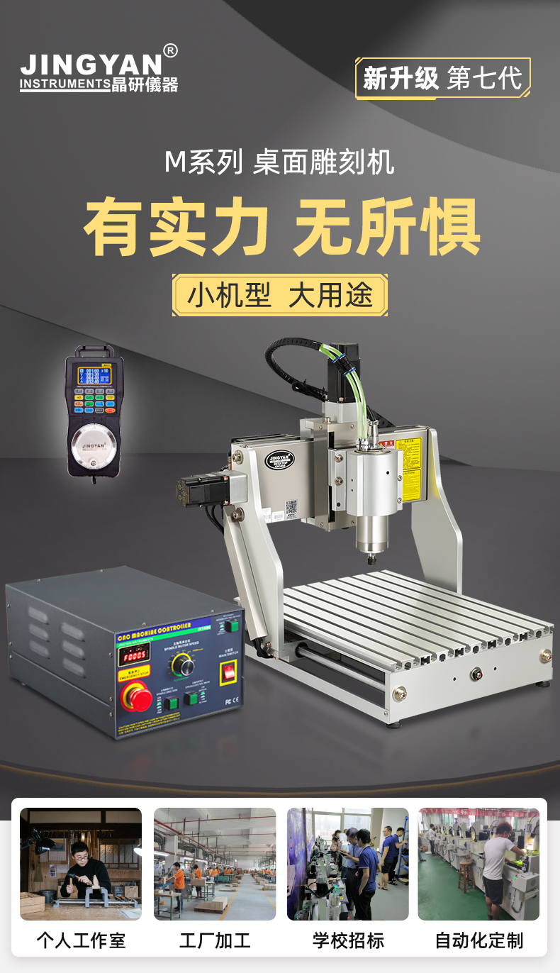 晶研M系列桌面雕刻機提供多種功率選擇,適應(yīng)不同硬度材料加工需求。其高精度編碼限位系統(tǒng)、高速閉環(huán)電機和智能驅(qū)動卡,確保了加工的精度、速度和節(jié)能效果。此外,晶智牛云系統(tǒng)和手機小程序為用戶提供了便捷的教學(xué)和售后服務(wù),使其成為工業(yè)應(yīng)用的理想選擇。