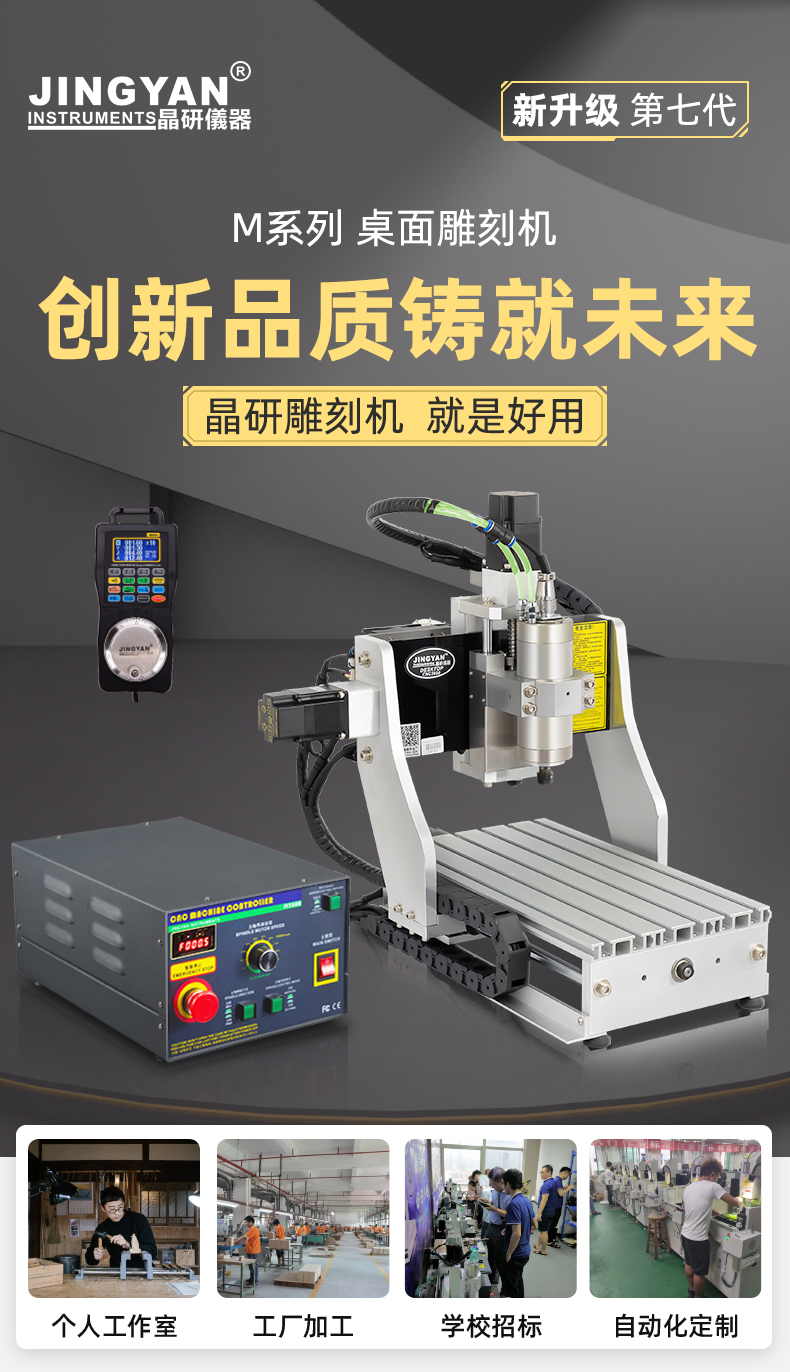 晶研M系列桌面雕刻機提供多種功率選擇,適應不同硬度材料加工需求。其高精度編碼限位系統(tǒng)、高速閉環(huán)電機和智能驅(qū)動卡,確保了加工的精度、速度和節(jié)能效果。此外,晶智牛云系統(tǒng)和手機小程序為用戶提供了便捷的教學和售后服務,使其成為工業(yè)應用的理想選擇。