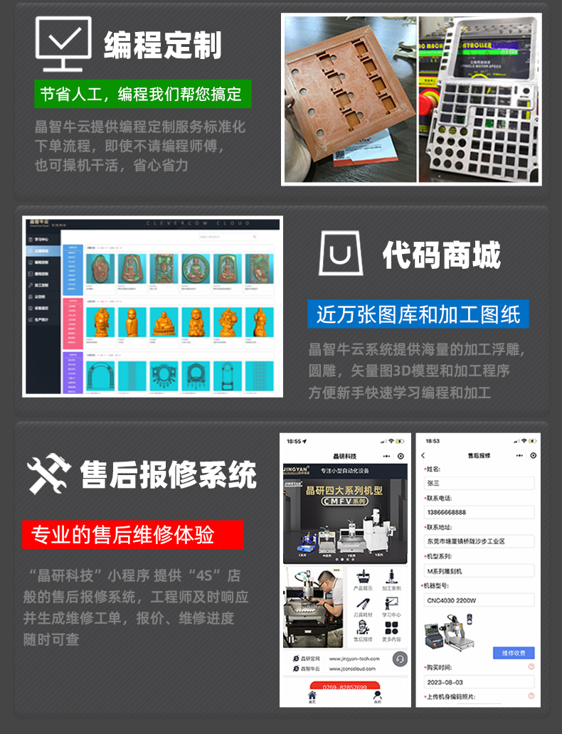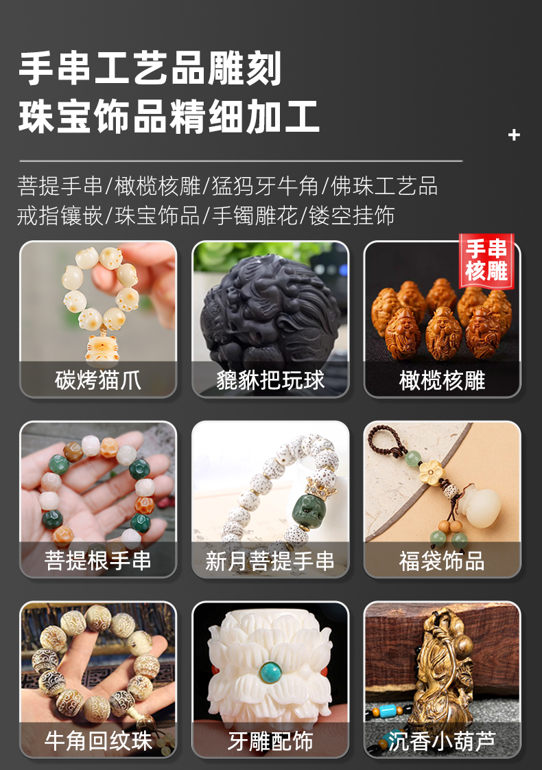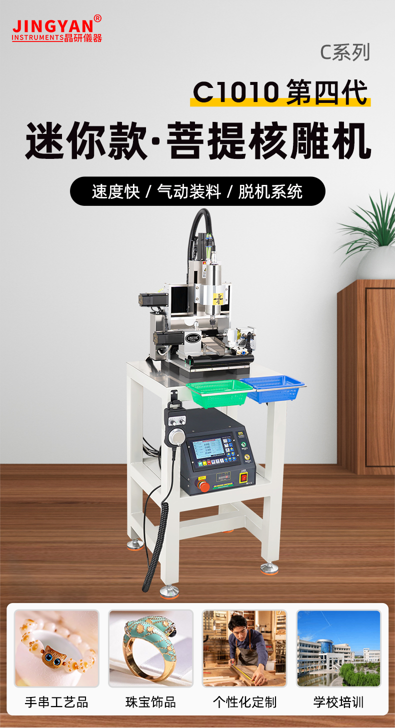 晶研儀器C1010第三代迷你款·菩提核雕機,專為手串工藝品和珠寶飾品設計。該設備具備兩種系統(tǒng)選擇:MACH 3 電控系統(tǒng)和JYS4脫機電控系統(tǒng),滿足不同加工需求。其九大核心特性包括專業(yè)系統(tǒng)、四軸聯(lián)動、高速加工等,確保加工效率和精度。四大性能升級,如智能計件、快速上料、高速運行和節(jié)能省電,進一步提升操作便捷性和經(jīng)濟效益。設備適用于多種材料加工,如菩提手串、橄欖核雕等,是個性化定制和批量生產(chǎn)的理想選擇。
