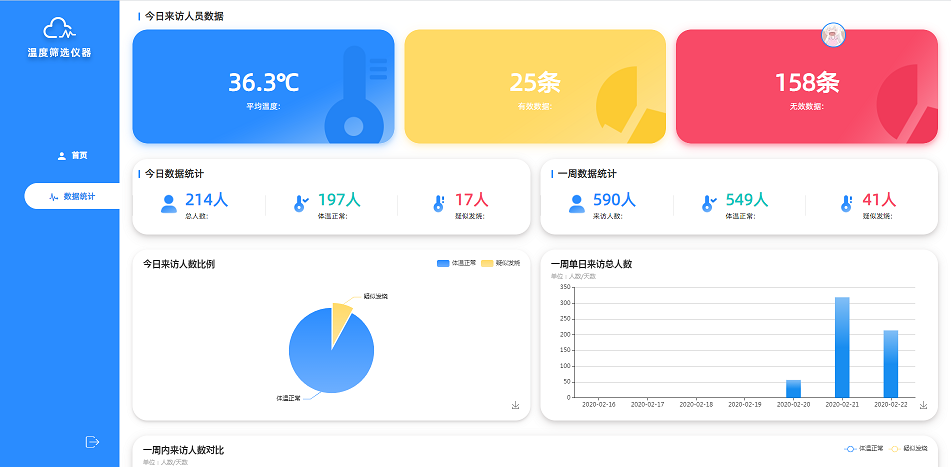 系統(tǒng)測量體溫精準(zhǔn)度有效范圍為2米,0.2秒測體溫、誤差小于0.5度,配合拍卡式人員資料數(shù)據(jù)錄入,集精準(zhǔn)體溫測量和大數(shù)據(jù)系統(tǒng)于一身,助力疫情監(jiān)控。